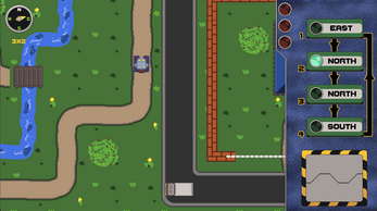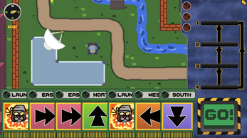 ![]() | LAUNCH - Engage Rolf's thrusters to charge ahead! - Rolf moves TWO UNITS in the direction he is facing. - Can be used to jump over obstacles. - Landing on an object will destroy it, but also cause an error. - Landing on a building will break Rolf's program. |